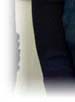 デニムのジャケットに袖がニットで