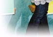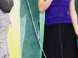 東京と同じ鮮やかなパープルブルーのノースリーブに濃紺のスカートです。